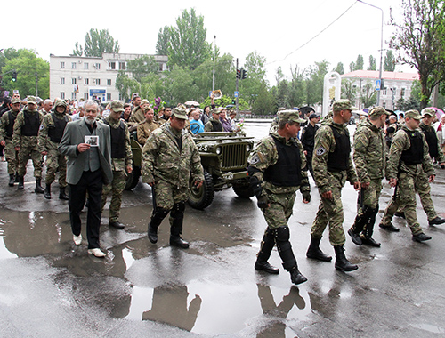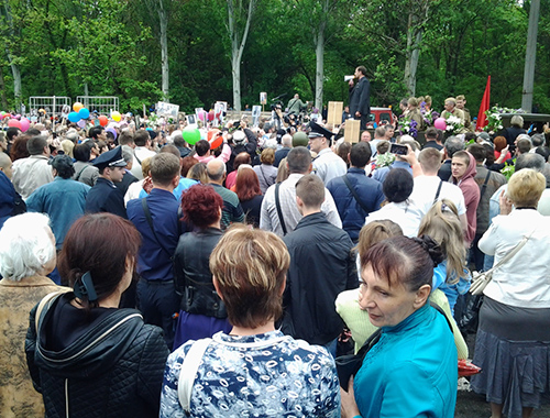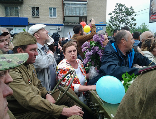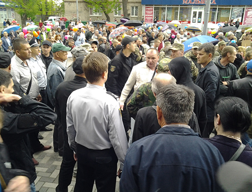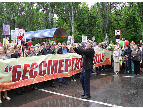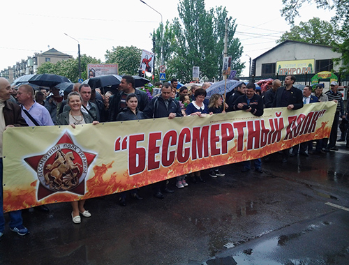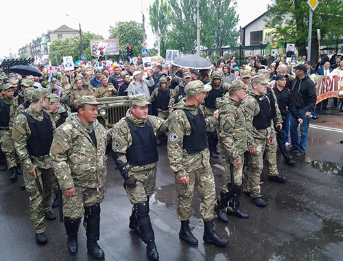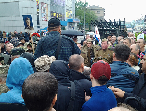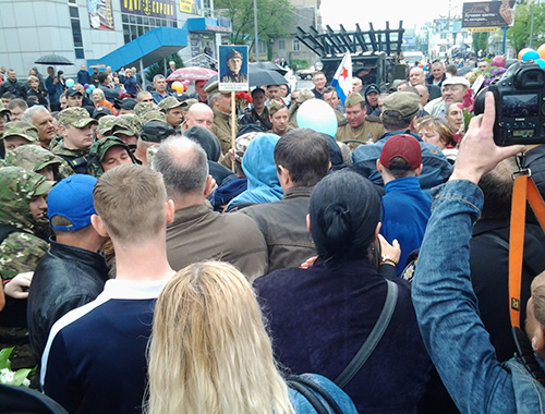 Спецподразделению "Скиф", пришлось окружать технику, а полиции - колонну и сопровождать "Бессмертный полк" до самого Братского кладбища, где организаторы предыдущего митинга спешно убирали микрофоны и ковровые дорожки.