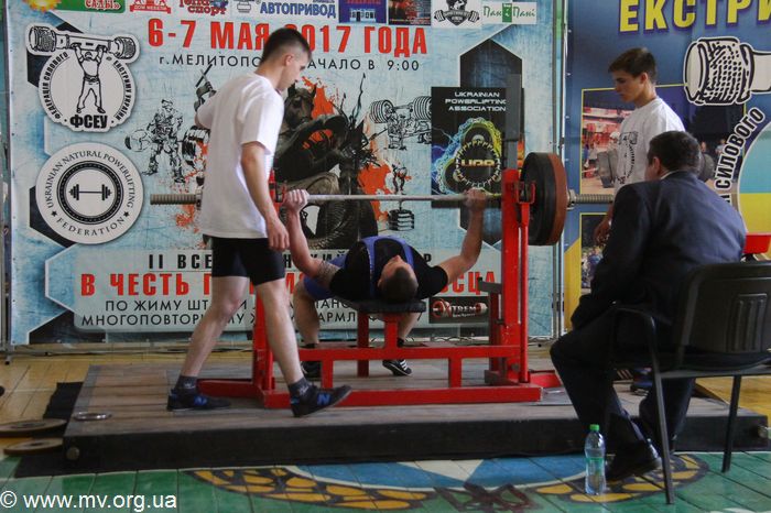 Упорная борьба развернулась в многоповторном жиме. В весе до 100 кг первое место занял мелитополец Иван Каверзнев. Он впервые участвовал в этой дисциплине, и 88 раз выжал штангу в 55 кг. Второе место тоже у мелитопольца Сергея Глинянского (штанга 55 кг на 66 повторений). Третье место занял Юрий Ищенко (Харьков) - штанга 55 кг на 53 повтора. В весе свыше 100 кг места завоевали: 1 место - Дмитрий Свириденко (Мелитополь) (штанга весом 100 кг на 34 повторения), 2 место - М. Халилов (25 повторений), 3 место - Максим Ефанов (21 повторение).