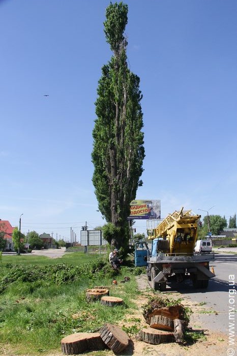 Вчера, 11 мая, рабочие занимались ликвидацией одиннадцати больших тополей по нечетной стороне проспекта перед поворотом на ул. Белякова. Как рассказывает начальник "Зеленстроя" Людмила Кузовлева, обновлению эти деревья не подлежат, несколько лет пытались обойтись лишь обрезкой сушняка, но это не помогло.