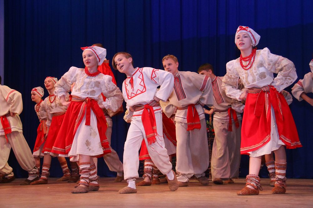 На отчетном концерте не только танцевали, но и играли, рассказывали стихи о героях танца. Зрителям было на что посмотреть! Вот под славянскую песню «Девка по саду ходила» выходит старшая группа. Светятся в полутьме флуоресцентным светом костюмы, а девушки танцуют мягко и грациозно.