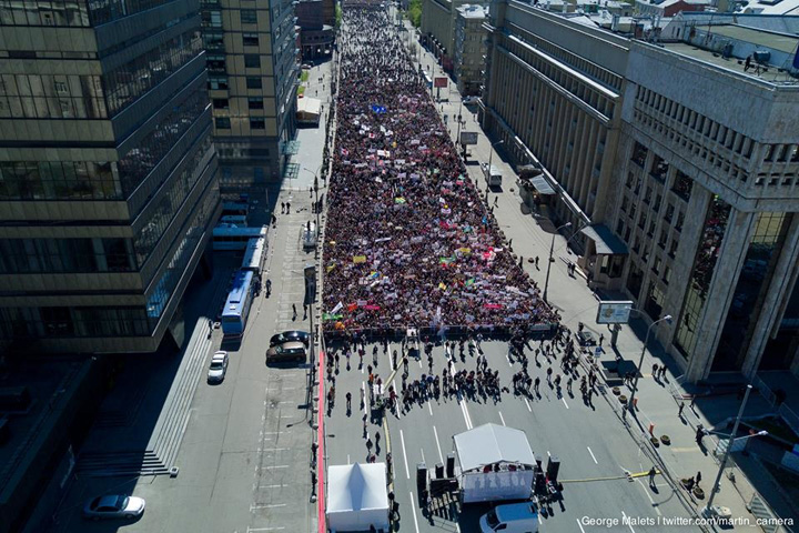 Фото митинга с воздуха снял и выложил в своем Facebook фотограф Геогрий Малец.