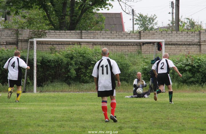 Команда ветеранов мелитопольского футбола противостоит футболистам из Приморска.