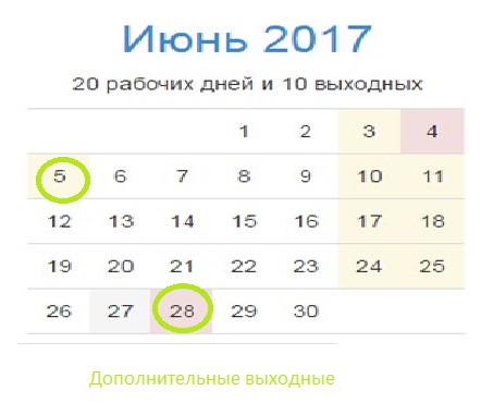 Стоит отметить, что 5 июня будет выходным по случаю Троицы, которую отмечают в этом году 4 июня (выходной переносится на понедельник), а 28 июня – День Конституции (в этом году это будет среда).