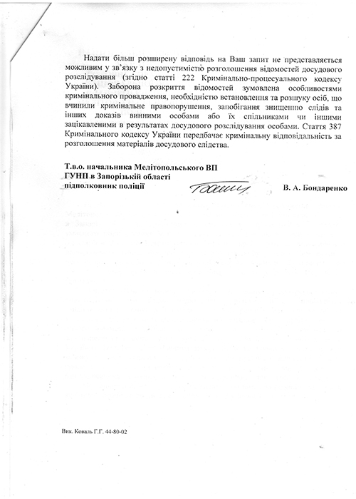 Сразу правоохранители причины своих действий комментировать отказались, предложив написать официальный запрос. Недавно редакция «МВ» получила ответ на него.