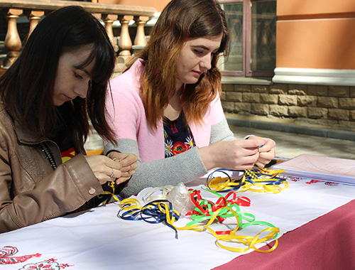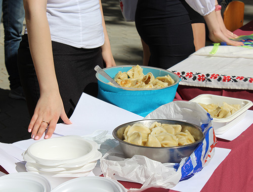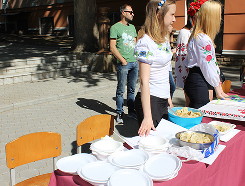 С утра на площадке перед центральным корпусом университета парни и девушки угощают украинскими блюдами, проводят различные мастер-классы и предлагают сфотографироваться.
