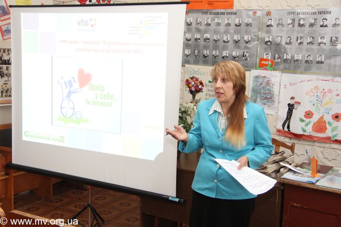 В тренинге приняли участие порядка 20 людей с инвалидностью - членов Мелитопольского городского и районного обществ людей с инвалидностью, физкультурно-оздоровительного клуба инвалидного спорта «Фокис» и БО «Социальный фонд». Тренинговая программа состояла из несклольких блоков. Первой с участниками тренинга работала журналистка из Запорожья, автор и ведущая телепередачи для людей с инвалидностью «Поверь в себя. Ты сможешь!» Ольга Дроздовская. Она рассказала о возможностях сотрудничества со СМИ для эффективного решения проблем, с которыми сталкиваются люди с инвалидностью, поделилась опытом работы в указанной тематике с местными журналистами и предложила собственные рекомендации по формированию толерантного отношения общества к указанной категории граждан.