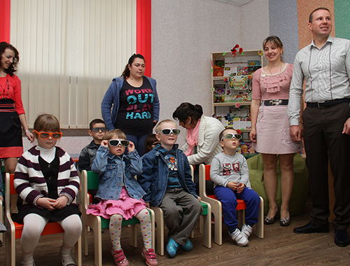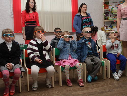 На первый сеанс пригласили малышей из семей вынужденных переселенцев, а также пришли чиновники и журналисты.
