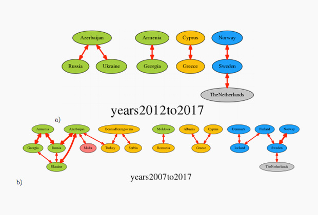 К подобным выводам ученые пришли, проанализировав результаты голосований между странами-участниками "Евровидения". Эти данные специалисты сравнили с культурной, национальной и географической близостью государств друг другу. В частности, оказалось, что Кипр традиционно поддерживает Грецию, а скандинавские страны — друг друга.