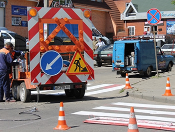 Дорога на перекрестке ул. М. Грушевского и ул. Интеркультурной частично перекрыта с самого утра. Рабочие занимаются обновлением пешеходных переходов.