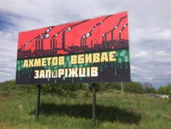 Отметим, на прошлой неделе в разных районах города появилась билборды с надписью «Ахметов вбиває Запоріжжя».