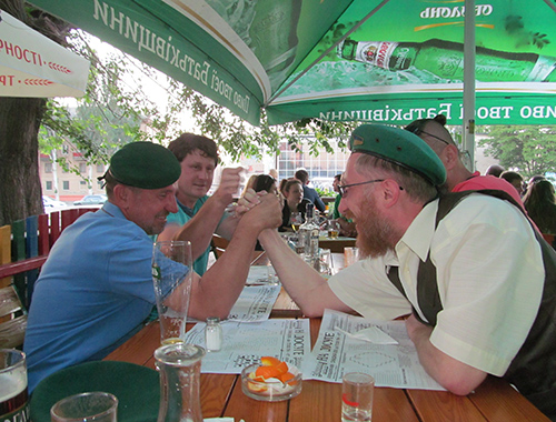 В ходе праздника мужчины по-дружески мерялись силами, борясь на руках. Бокалы наполнялись пивом, а иногда и чем покрепче. Но пограничники держали себя в руках, споры нивелировали, и праздник мордобоем не омрачали.