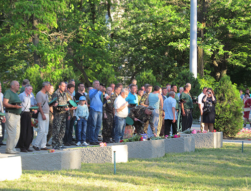 После взаимных поздравлений пограничники строевым шагом прошли до мемориала «Братское кладбище», где почтили минутой молчание память павших солдат и возложили цветы на могилы героев.