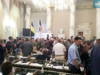 Люди, представившиеся как активисты партий "Свобода" и "Национальный корпус", около 13:30 во вторник ворвались в здание Львовского областного совета.