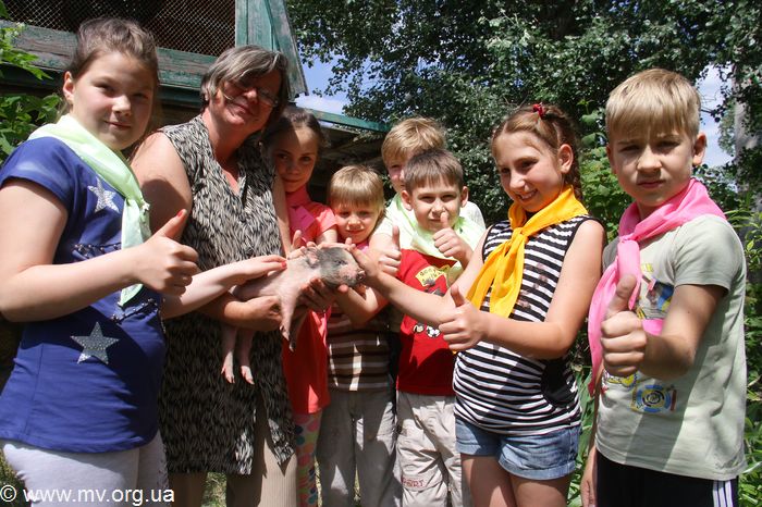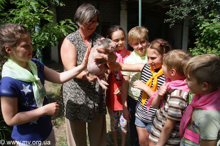 Как рассказала директор ЦЭНТУМ Татьяна Кот, свинку и пернатых подарил экоцентру заслуженный голубевод Украины, большой друг экоцентра и детей Михаил Клименко из с. Вознесенка (Мелитопольский район). МИхаил Владимирович уже много лет подряд является активным участником выставок голубей, декоративных и сельскохозяйственных птиц, которые регулярно проводятся в ЦЭНТУМ. Он не просто выставляет на выставке своих птиц, но и интересно рассказывает кружковцам и школьникам о своих питомцах, их выращивании и уходе за ними. А еще он всегда дает детворе погладить и подержать в руках птиц, что вызывает у ребят в настоящий восторг. М. Клименко считает, что ребенок, растущий без общения с природой и животными, не может быть счастлив в полной мере.