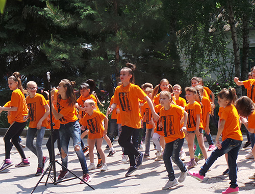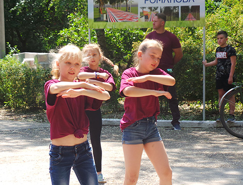 Принять участие в праздничных мероприятиях в парке решили и сами дети. Сегодня на площадке около администрации там прошел флешмоб "Страна детства". Танцевальное действо было подготовлено воспитанниками студии современного танца "Х-миссия". Более 20 ребят ритмично и слажено, под зажигательную музыку исполнили свой танец. Посмотреть на них собрались родители и случайные прохожие, гуляющие по парку. После на импровизированном танцполе их сменили юные прихожане церкви "Новое поколение", которые также показали свое мастерство в небольшом флешмобе.