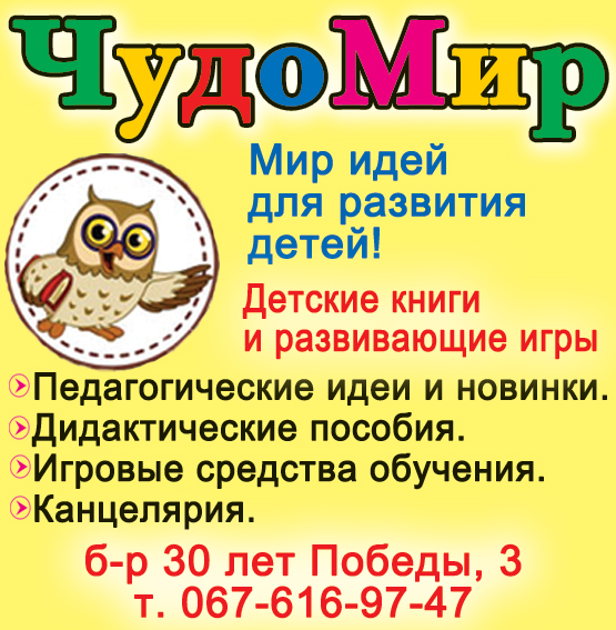 осуду. Если ребенок постарше - он может приготовить вам ужин. Мотивацией послужит то, что у вас с его помощью появится больше свободного времени, которое вы можете посвятить ему.Во-вторых, вы можете предложить ребенку вести дневник своих достижений этим летом. Например, сколько раз он потянулся, отжался, что с ним необычного произошло, какую интересную книгу прочитал. Кстати, огромный выбор детской литературы есть в книжном отделе в магазине «Пассаж» на 1 этаже, в магазине «Эврика» (ул. Грушевского, 5).
