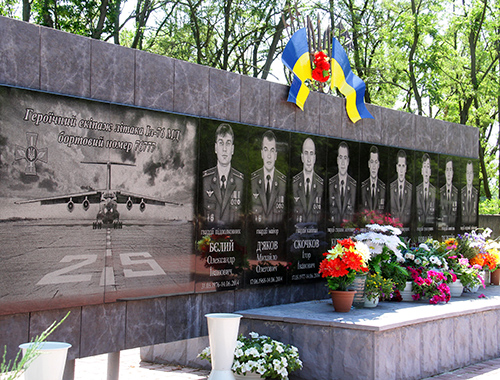 Над КПП авиабригады звучит Гимн Украины и пахнет корвалолом. Сегодня, 14 июня, здесь проходит траурный митинг в память о погибшем экипаже ИЛ 76, который сбили российско-террористические войска возле Луганска в 2014 году.