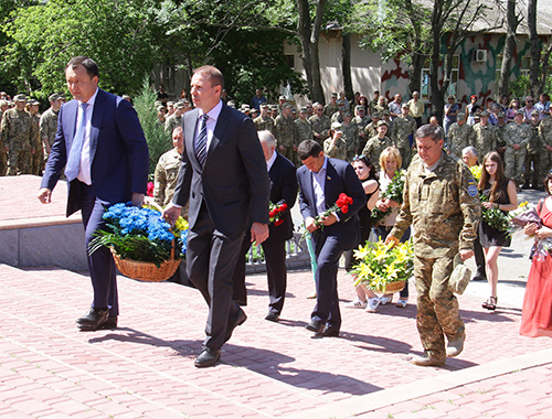 К собравшимся - родственникам, служащим бригады, обычным горожанам обращаются руководители обрасти Константин Брыль и Григорий Самардак, города -Сергей Минько, района - Александр Мангул. Красной нитью проходят слова благодарности родным - за то, что отдали за Украину самое дорогое - жизни любимых людей.