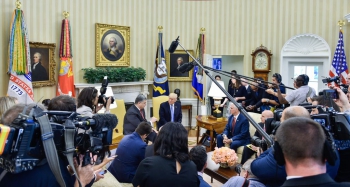 "Президент Трамп встретился сегодня с президентом Петром Порошенко и обсудил поддержку мирного разрешения конфликта на востоке Украины, а также программу реформ президента Порошенко и усилия по борьбе с коррупцией", - говорится в сообщении.