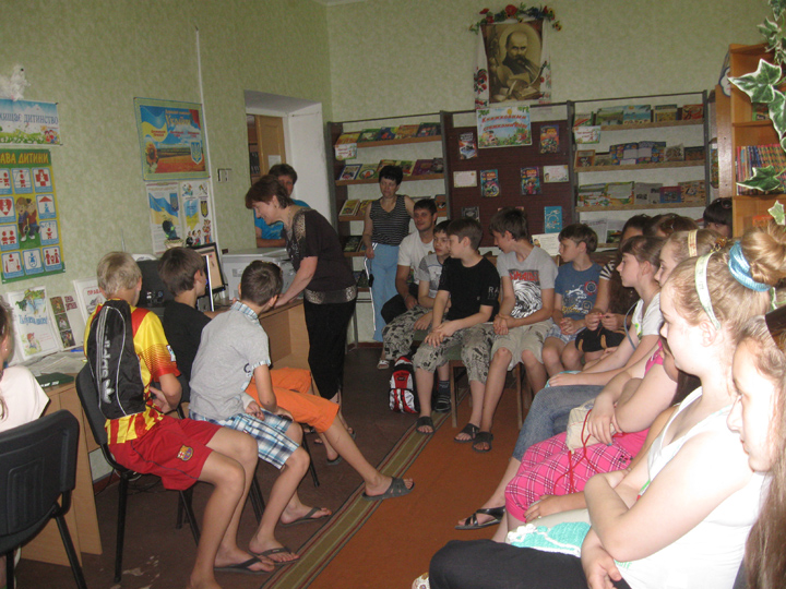 - Основная идея, которую мы заложили в это мероприятие – это увлечь детей младшего школьного возраста, 3-4 классов, книгой. Вы ведь знаете, как мало сейчас дети читают книг и как много они смотрят кино, играют в компьютерные игры. Поэтому мы через отрывки экранизаций этих книг показали ребятам украинскую литературу. Показали самые интересные отрывки из экранизаций Всеволода Нестайко «Тореадоры из Васюкивки», Ивана Франко «Крашеный лис», Юрия Винничука «История одного поросенка» и других украинских писателей. Знаете, было приятно, когда по завершении мероприятия ребята брали почитать те книги, отрывки из экранизаций которых мы показали им на экранах мониторов библиотечных компьютеров. Самый большой интерес вызвала книга Дахно «Как казаки кулиш варили», ее разобрали читатели. Надеемся, другие книги украинских авторов тоже вызовут интерес после того, читатели снова придут к нам в библиотеку, – рассказала Елена Толстенева.