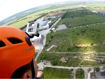 Опубликовано видео сумасшедшего прыжка со стометровой трубы в Запорожье