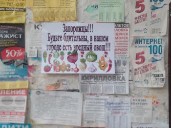 На них говорится о то, что «Свекла убивает запорожцев», а также горожан предупреждают о вредном овоще.