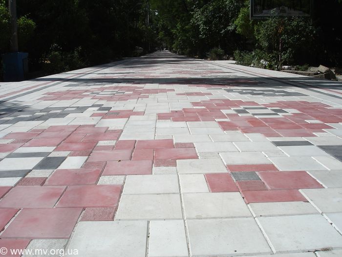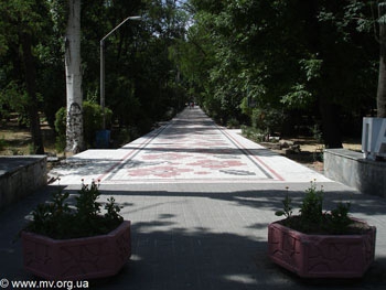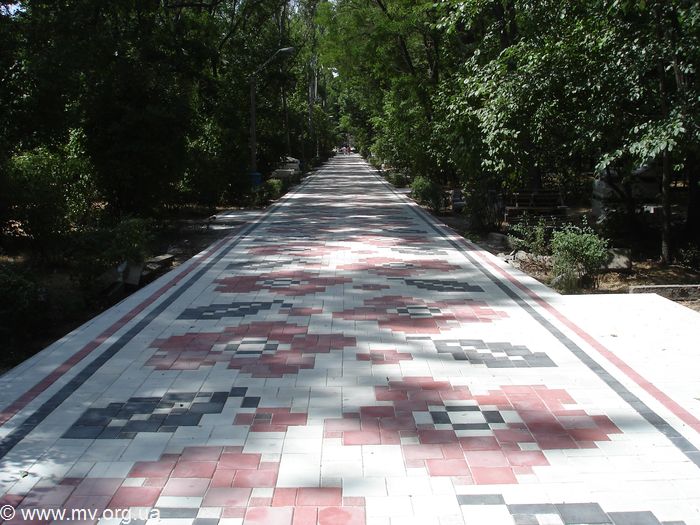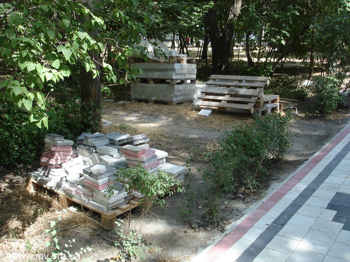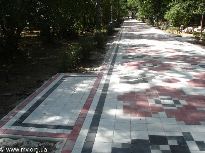 Так, завершается процесс укладки плитки в форме национального орнамента на главной аллее парка со стороны проспекта Б. Хмельницкого. Перед рабочими еще стоит ряд мелких задач, таких как установка лавочек, урн для мусора и вывоз строительного мусора, скопившегося здесь в результате ремонта.