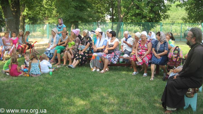 «После Божественной литургии, в храмовом парке состоялся праздник «Моя бабушка», приготовленный ребятами воскресной школы «Виноград». В программе праздника были песни и стихотворения, игры, сольные выступления. Ребята пели о дружбе «Зазвени ручей», о маме «Мамина сорочка», «Україна – це ти» Тины Кароль. Нанкова Татьяна исполнила цирковое выступление «Кукла». Михайлова Юлия – исполнила сольно песню «Не отнимайте солнце у детей». Бабушки аплодировали, глядя со слезами на глазах на выступления деток. Играли в игры и бабушки: конкурсы «любимый внучок» (бабушки по очереди называли ласково своих внуков, а внуки с завязанными глазами отыскивали свою бабушку); сказочный аукцион и блиц-опрос (вспомнить как можно больше сказок, где есть бабушка и ответить на вопросы по сказкам). Кулинарный конкурс (определить по рецепту блюдо); «Золушка» (с завязанными глазами бабушки определили крупу на ощупь) и «Узнай бабушкины руки» (прикасаясь к бабушкиным ручкам, внуки с завязанными глазами находили свою бабушку). Закончилось праздничное мероприятие фотосесией в цветочной фотозоне и вкусной трапезой из домашней выпечки, приготовленной кулинаром Татьяной Александровной», – сказала Елена Сарбаш.