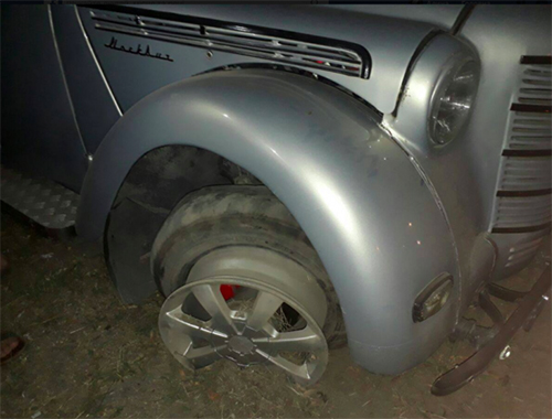 У «Москвича» серьезно разбита передняя часть и отвалилось колесо.