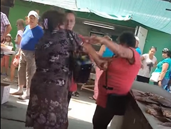 Отдыхающая на курорте била продавца рыбой (Видео)