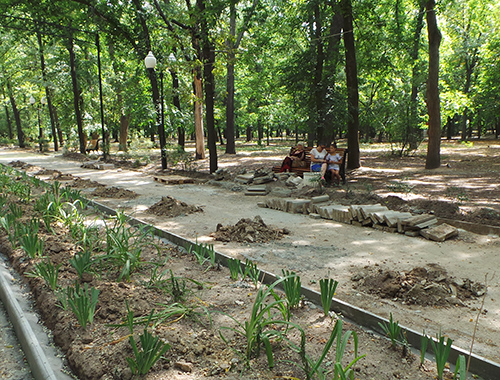 На территории городского парка им. Горького будет уложено без малого 8 тыс. квадратов тротуарной плитки.