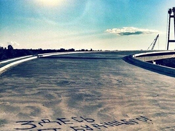 На запорожских недостроенных мостах появилась странная надпись. Сделана она черной краской.