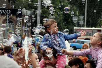 В Запорожье развлекались мыльными пузырями