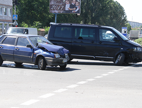 Сегодня в 10 часов утра в районе автовокзала (перекресток Воинов-Интернационалистов и Интеркультурной) случилось дорожно-транспортное происшествие, в котором столкнулись две машины: микроавтобус «Фольксваген» и ВАЗ-21099.