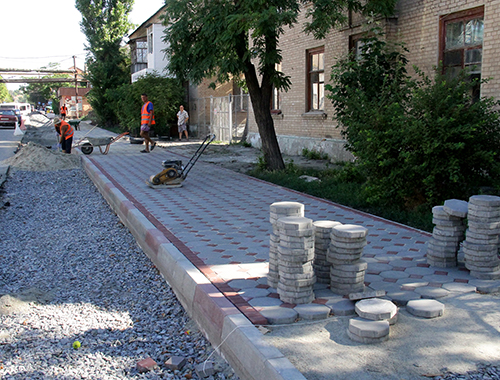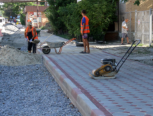 Тротуар на ул. А. Невского начали выкладывать плиткой