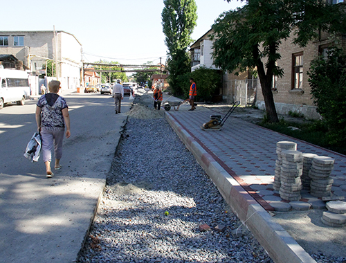 Сейчас дорожка выложена плиткой примерно наполовину. Вот только проблема с высадкой пассажиров еще не решена - дорога по-прежнему разрыта, и людям по-прежнему и приходится выходить из маршруток буквально в яму и ходить по дороге.