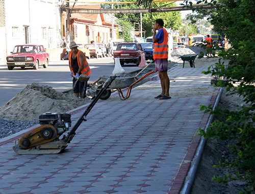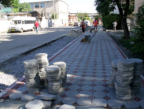 Рабочие ЧП "АБЗ" продолжают ремонт тротуара по ул. А. Невского напротив Образцового рынка. Первые результаты уже видны - на месте проведения работ появляются островки, пригодные для передвижения пешеходов.