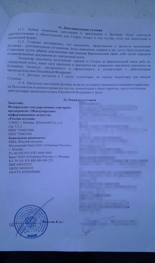 Во время них правоохранители обнаружили "компьютерную технику с доказательствами переписки с российскими кураторами и подготовки антиукраинских материалов", изъяли "копии заключенных с государственными информационными агентствами РФ соглашений на подготовку заказных статей, акты приема-передачи работ за условленный гонорар и банковские карточки, на которые перечислялись деньги ".