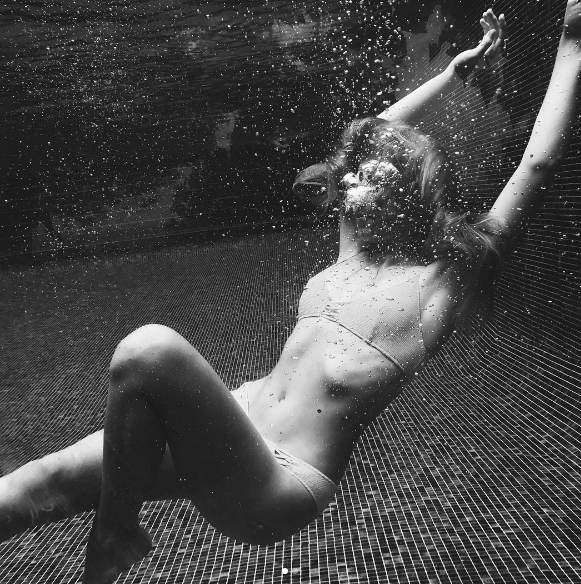 На опубликованных кадрах Соня позирует все в том же раздельном купальнике. Однако на этот раз съемка проходила в бассейне под водой.