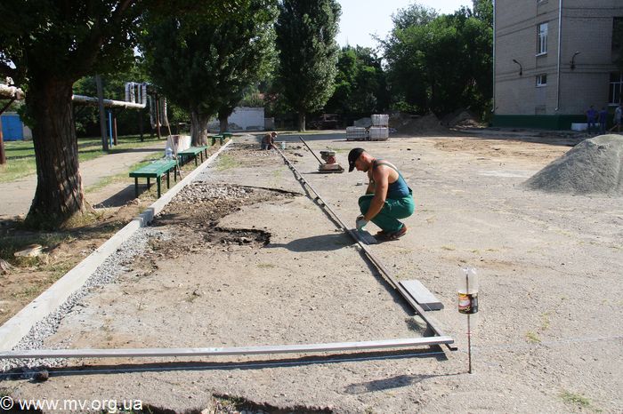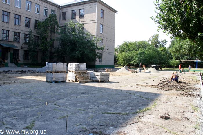 Так, во внутреннем дворе школы приступили к ликвидации последствий ремонта канализационной системы. Напомним, что вся территория будет выложена плиткой. Все материалы для будущих работ уже приобретены и доставлены. А со стороны спортивной площадки практически по всей длине двора уже выложен новый бордюрный камень.