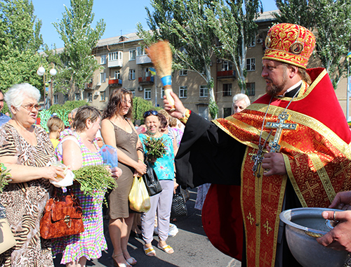 После награждения благочинный церквей Мелитополя, протоиерей Максим Смирнов пожелал всего самого хорошего всем живущим в городе и всем труженикам, занимающимся пчеловодством. Священник освятил дары садов и полей, мед и букеты цветов и трав, которые были на прилавках и которые приготовили мелитопольцы к освящению.