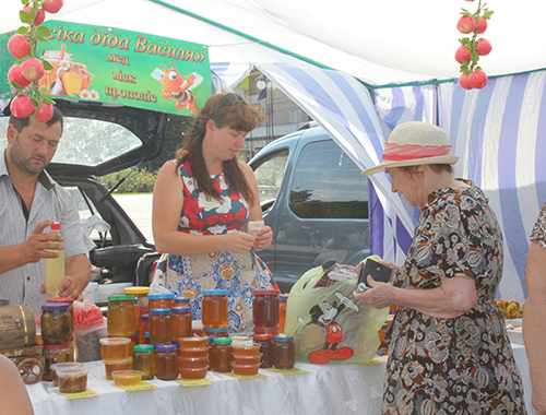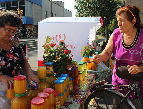 Непростой год выдался для пчеловодов: весенние холода, дожди, а потом жара и засуха не способствовали работе тружениц-пчелок, но дело свое они сделали. Горожанам предлагалось продегустрировать и купить разнообразные меда: акациевый с глядичией, кориандровый с тмином и расторопшей, подсолнуховый, разнотравный, редкий мед акации "Аморфа", гречишный и др. Попутно продавались продукты пчеловодства: забрус, перга, соты, медовое мыло, пыльца, мази и настойки на основе меда.