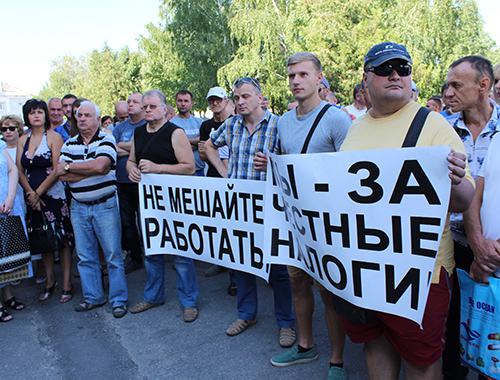 Сегодня утром около 30 человек собрались у здания Налоговой инспекции.