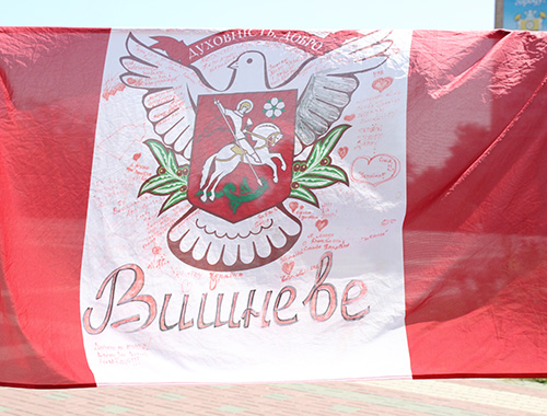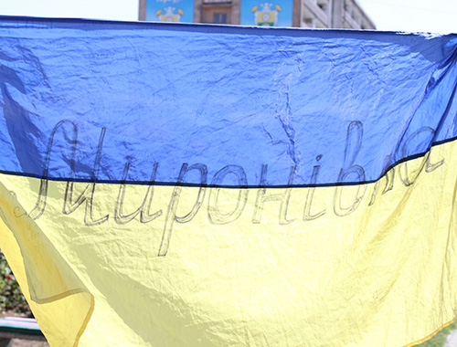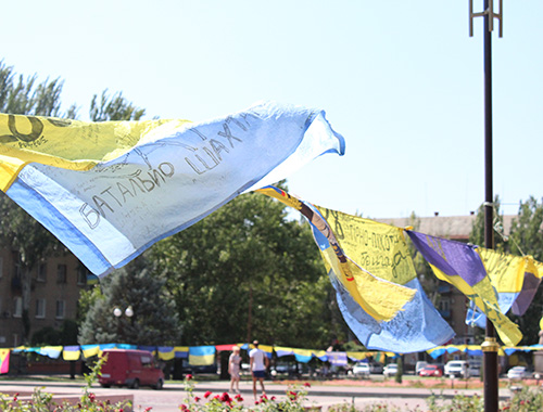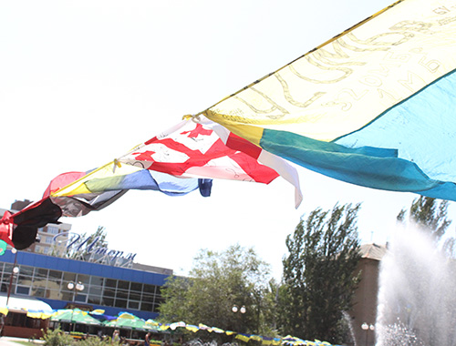 Ныне акция шагает по Запорожской области. Сегодня флаги развешены на центральной площади Мелитополя. Множество сине-желтых, расписанных маркерами полотен развеваются на ветру. На них - сотни слов, передающихся с помощью этих флагов от города к городу, от человека к человеку. Акция продлится до восьми вечера, и любой желающий также может принять в ней участие, оставив пожелание на чистом флаге, который после отправится дальше.