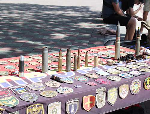 Сегодня на площади Победы до самого вечера будут развеваться десятки флагов Украины и боевых знамен подразделений, принимающих участие в АТО. Эти флаги, с пожеланиями и напутствиями собраны по всей Украине и прифронтовой зоне.