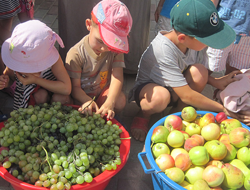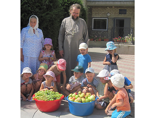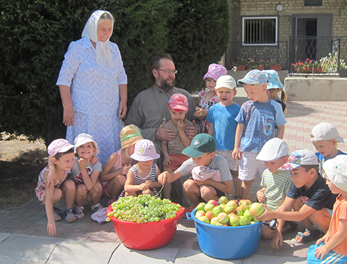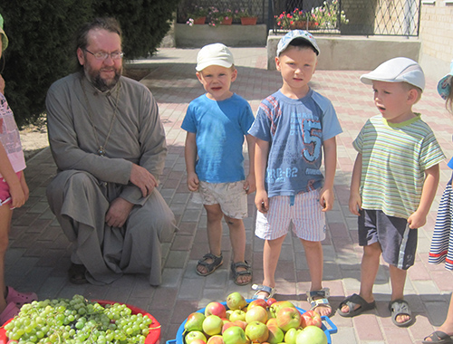 На следующий день, 20 августа, игумен Макарий вместе со старостой Казанского храма в с. Константиновка Мелитопольского района Раисой Моисеенко посетили с праздничным визитом детей в приюте в пгт. Мирный. Батюшка поздравил ребят и работников приюта с праздником Преображения Господня и передал освященные фрукты и виноград. С праздничным визитом и фруктовыми угощениями батюшка посетил также детские садики Константиновки «Теремок» и «Веселка».