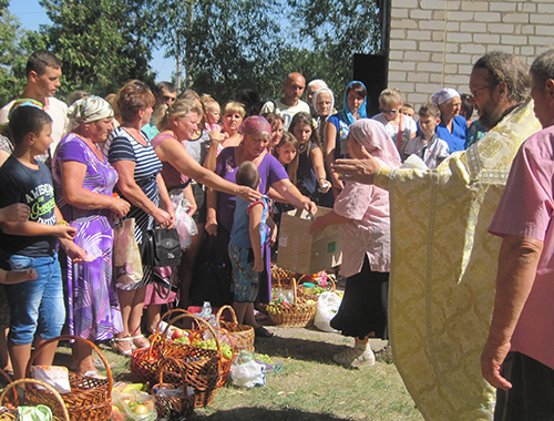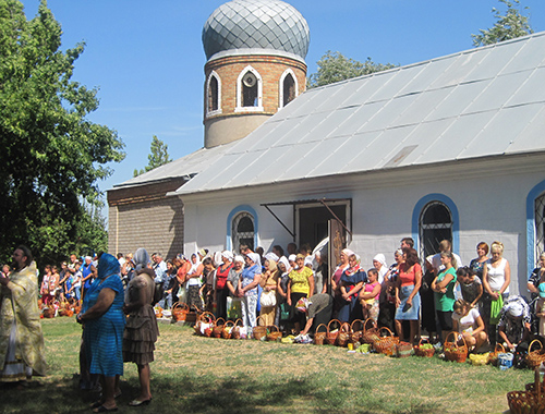 После божественной литургии в праздник Преображения Господня Благочинный Мелитопольского районного благочиния игумен Макарий (Шадрин) совершил освящение плодов, винограда и фруктов в с. Константиновка и в с. Мордвиновка.