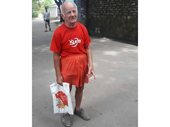 "22 августа на улицах Запорожья была замечена перезрелая личинка хомо-совектикус. На вопрос почему он разгуливает по городу в таком виде ответил: "Это мой ответ евробаранам, я не хочу, чтоб мы теряли работу", – написал он, опубликовав фото пожилого фаната коммунистов.