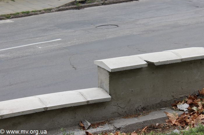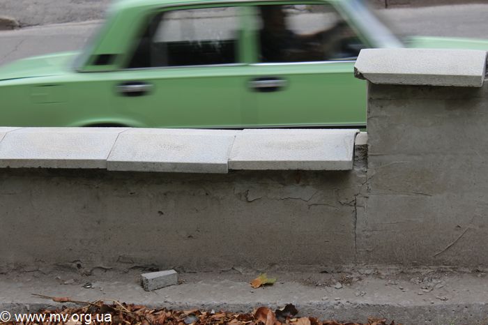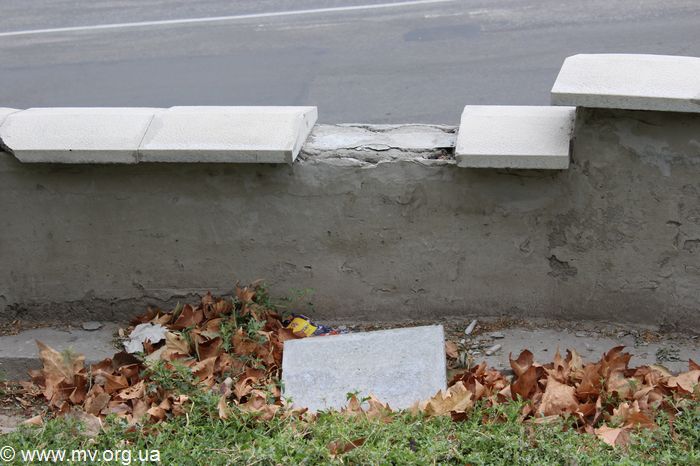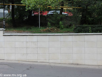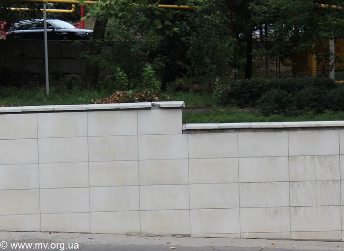 В конце прошлого года в центре Мелитополя, возле дороги по ул. Гетманской (Ленина), около главного корпуса МГПУ появилась подпорная стенка из бетона, эстетично выложенная светлой плиткой. Не прошло и года с момента ее установки, как плитка начала терять вид.