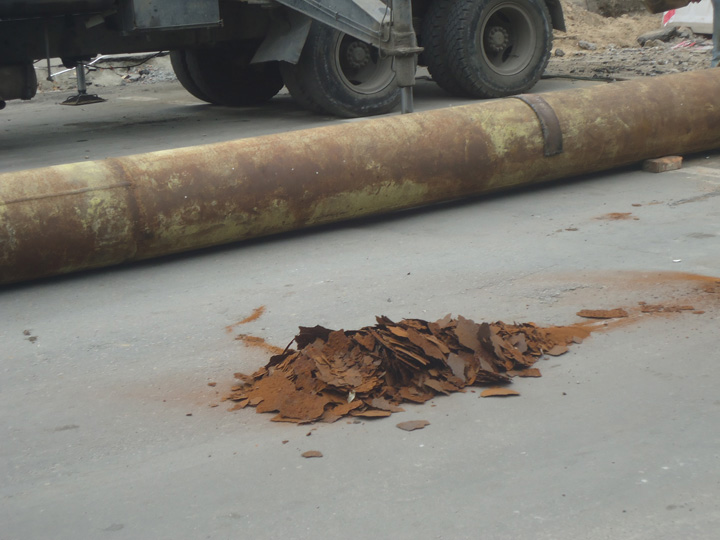 При этом из трубы вывалились килограммы ржавчины.
